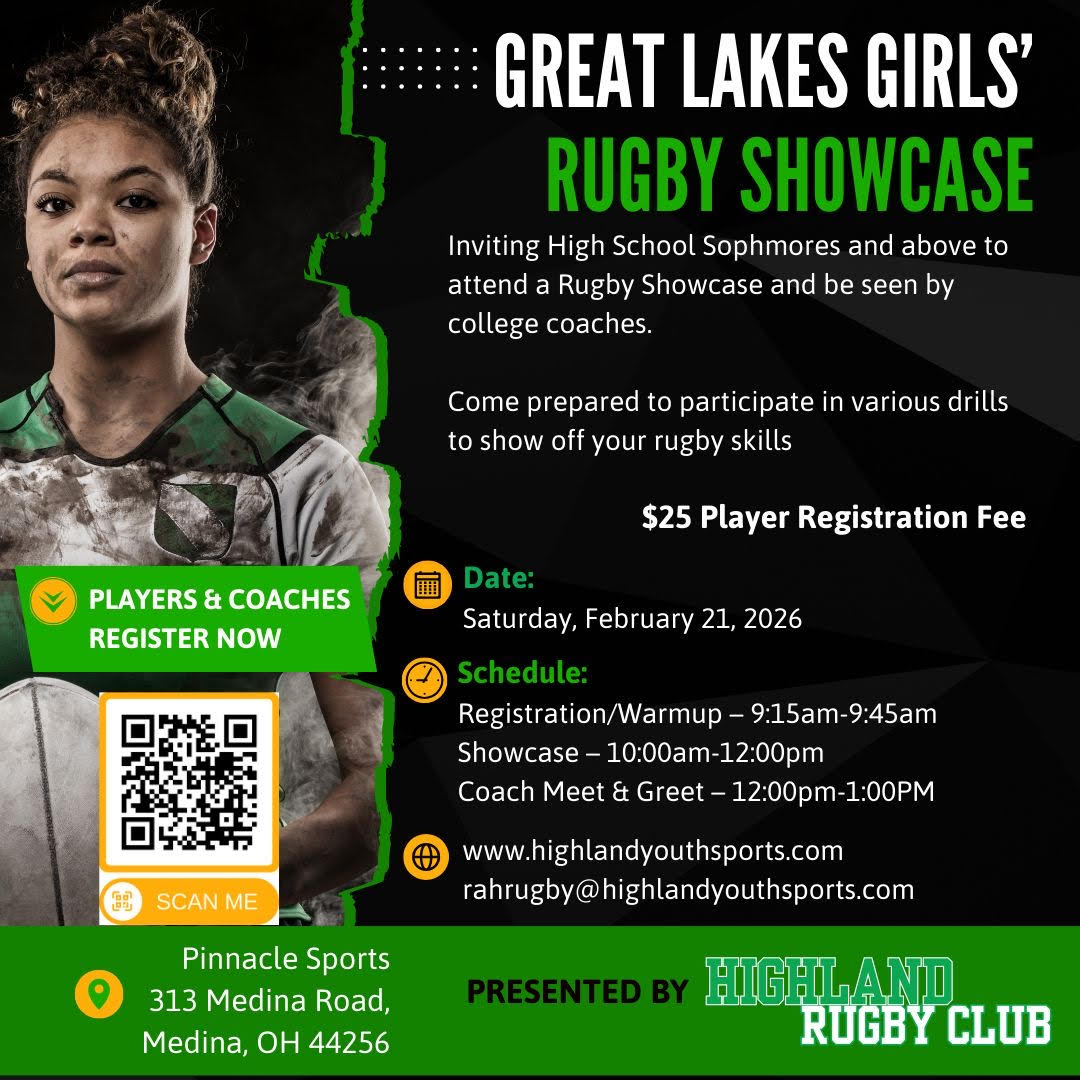 Highland Girls Rugby is hosting a collegiate showcase on February 21 in Medina, Ohio.