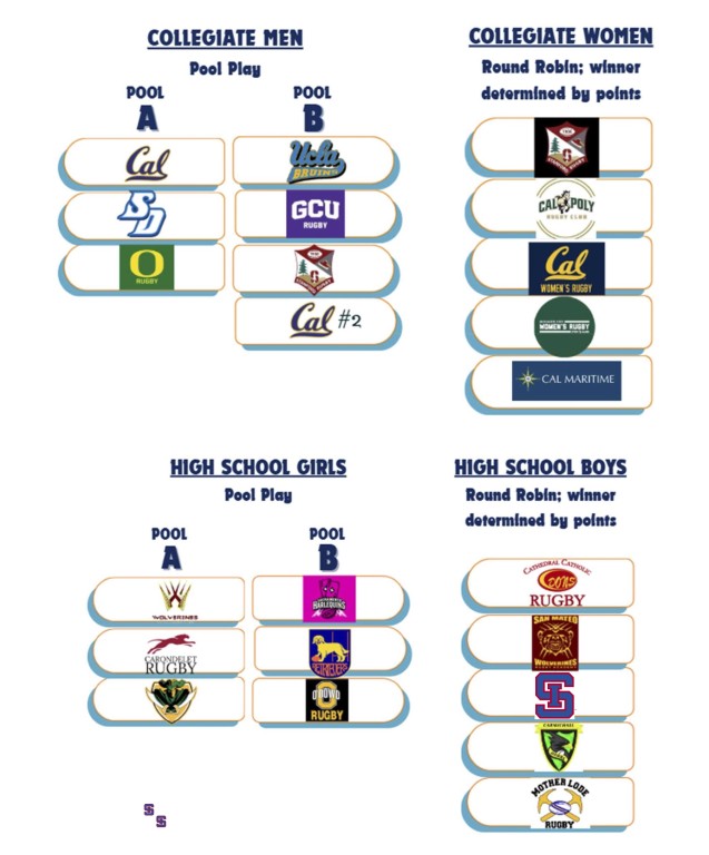 With the women's bracket, six teams will play a round-robin. This includes the two CRAA D1 15s finalists in Stanford (who have won that trophy the last two seasons) and Cal. Cal Poly, Cal Maritime, and Sacramento State.
